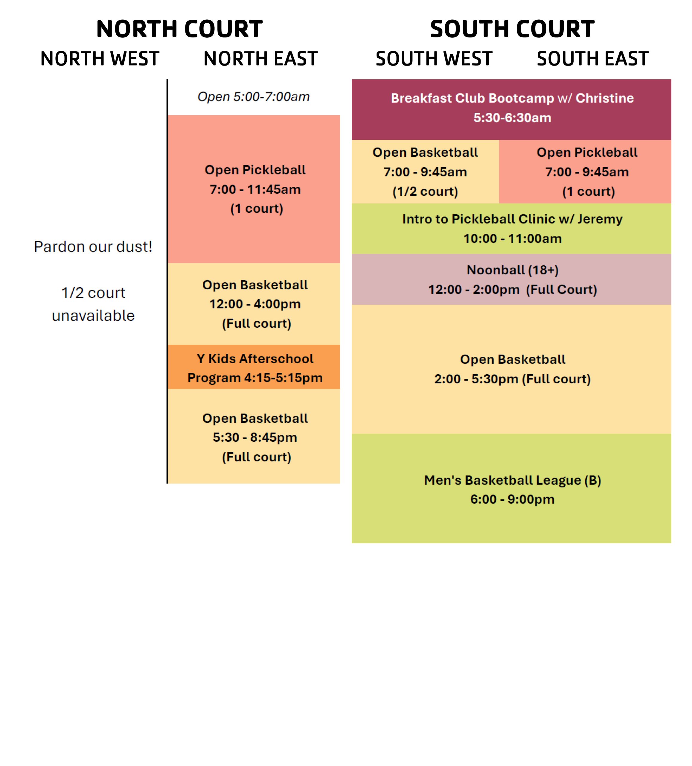 • Reservations can be made up to 5 days in advance or until one hour before the class starts. If you wish to reserve a spot within one hour before class starts, please call the Member Service Desk.